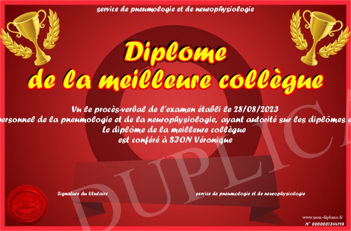 Envoyez par email votre Diplôme de la meilleure collègue personalisé