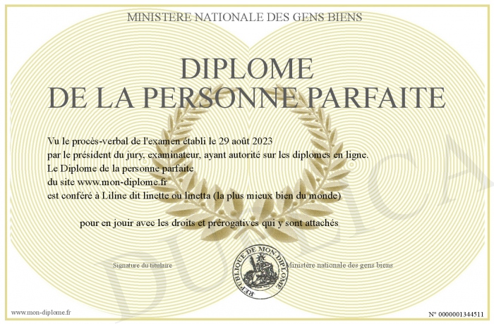 Envoyez par email votre Diplôme de la personne parfaite personalisé