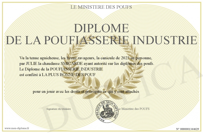 Envoyez par email votre Diplôme de la POUFIASSERIE INDUSTRIE personalisé
