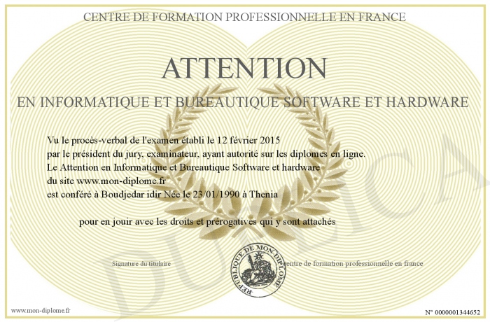 Envoyez par email votre Attention en Informatique et Bureautique Software et hardware personalisé