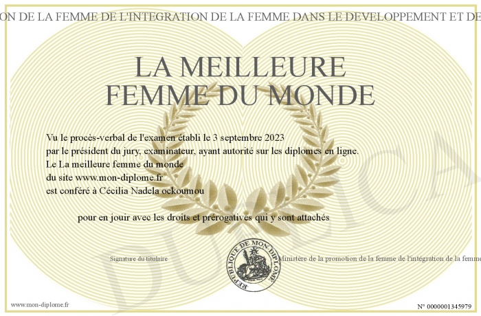 envoyé par le Ministère de la promotion de la femme de l'intégration de la femme dans le développement et de l'économie informelle !