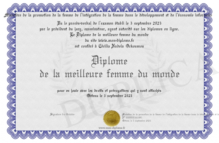 Envoyez par email votre Diplôme de la meilleure femme du monde personalisé