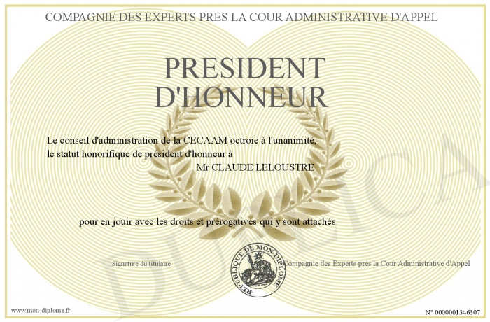 Envoyez par email votre PRESIDENT D'HONNEUR personalisé