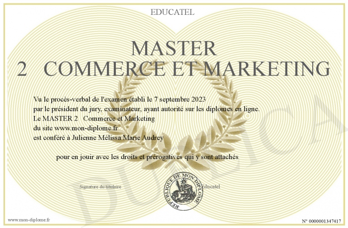 Envoyez par email votre MASTER 2 Commerce et Marketing personalisé