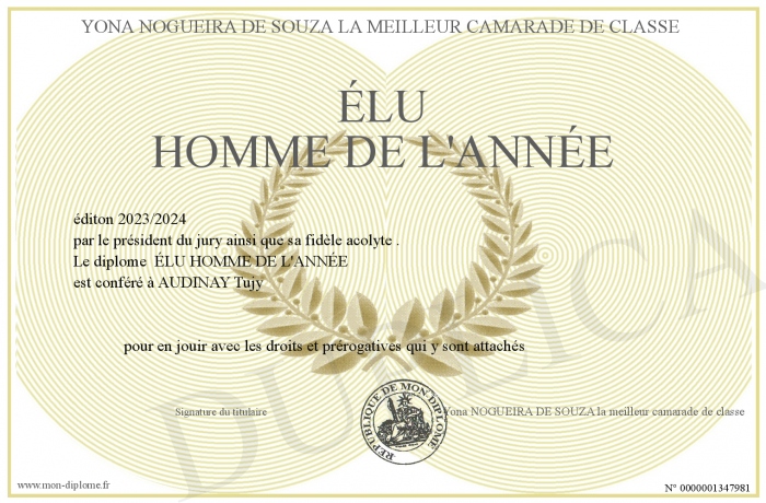 Envoyez par email votre ÉLU HOMME DE L'ANNÉE personalisé