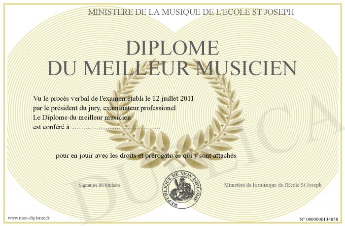Envoyez par email votre Diplôme du meilleur musicien personalisé
