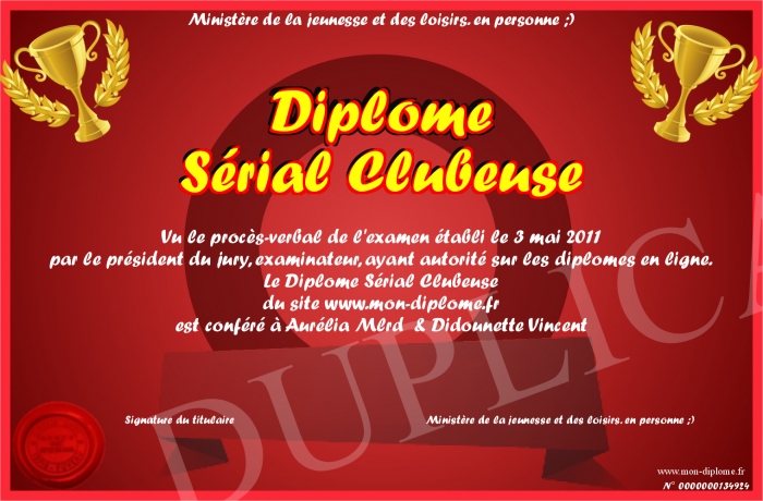 Envoyez par email votre Diplôme Sérial Clubeuse personalisé