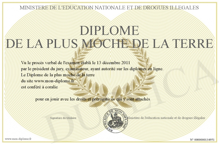Envoyez par email votre Diplôme de la plus moche de la terre personalisé