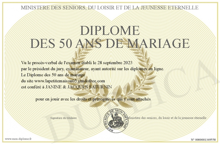 Envoyez par email votre Diplôme des 50 ans de mariage personalisé
