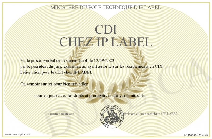 Envoyez par email votre CDI chez IP LABEL personalisé