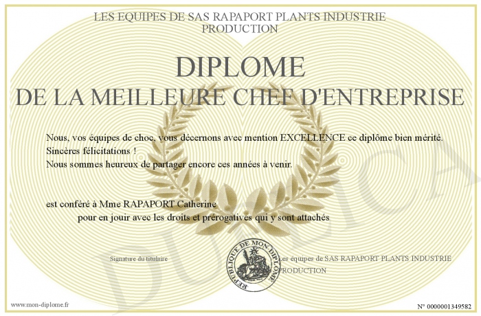 Envoyez par email votre Diplôme de la meilleure chef d'entreprise personalisé