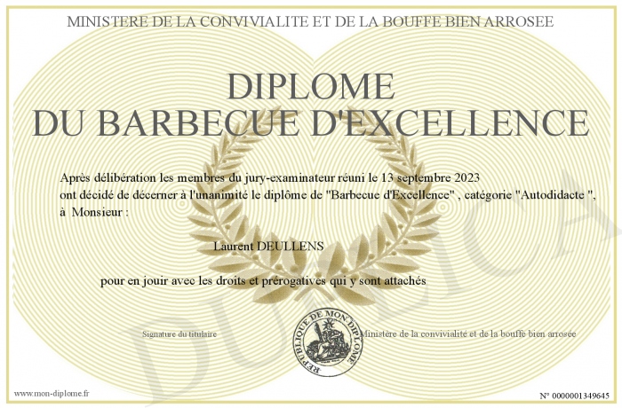 Envoyez par email votre Diplôme du Barbecue d'Excellence personalisé