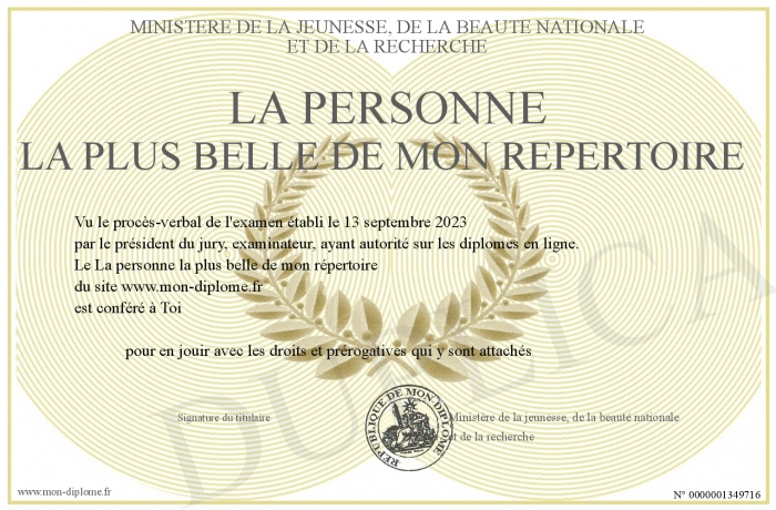 Envoyez par email votre La personne la plus belle de mon répertoire personalisé