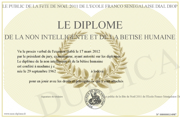 Envoyez par email votre Le diplôme de la non intelligente et de la betise humaine personalisé