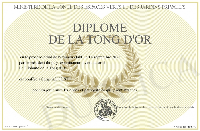 Envoyez par email votre Diplôme de la Tong d'Or personalisé