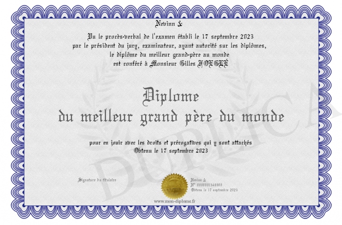 Envoyez par email votre Diplôme du meilleur grand père du monde personalisé