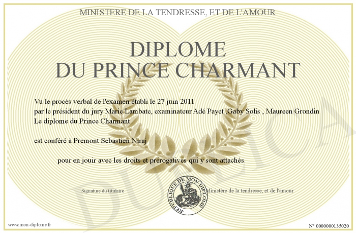 Envoyez par email votre Diplôme du Prince Charmant personalisé