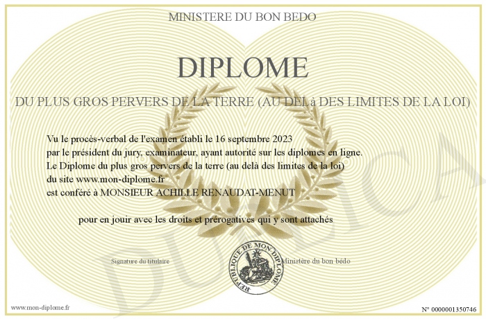 Envoyez par email votre Diplôme du plus gros pervers de la terre (au delà des limites de la loi) personalisé
