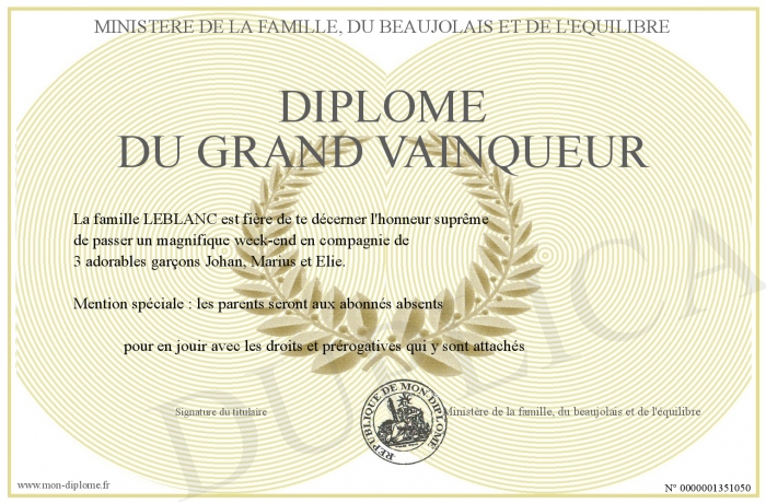 Envoyez par email votre Diplôme du grand vainqueur personalisé