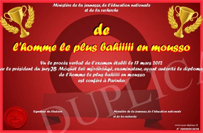 Envoyez par email votre de l'homme le plus bahiiiii en mousso personalisé