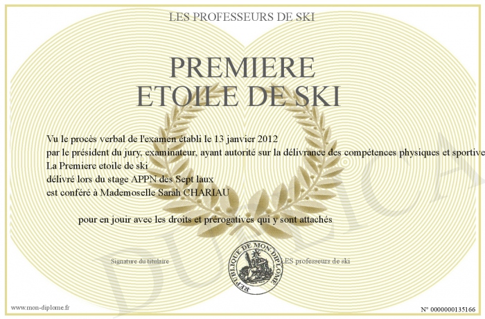 Envoyez par email votre Premiere etoile de ski personalisé