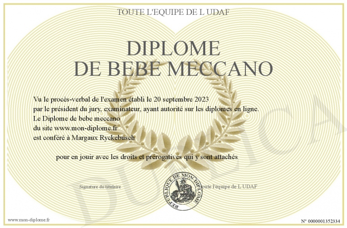 Envoyez par email votre Diplôme de bebe meccano personalisé