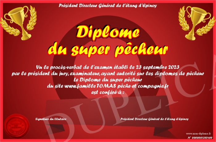 Envoyez par email votre Diplôme du super pêcheur personalisé
