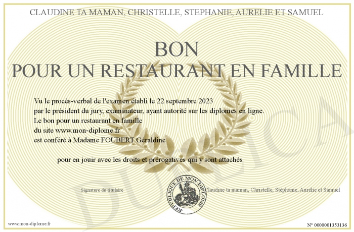 Envoyez par email votre bon pour un restaurant en famille personalisé