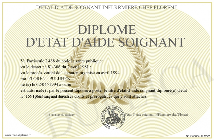 Envoyez par email votre Diplôme d'état d'aide soignant personalisé