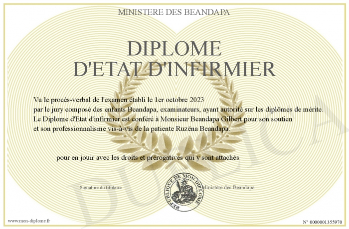 Envoyez par email votre Diplôme d'Etat d'infirmier personalisé