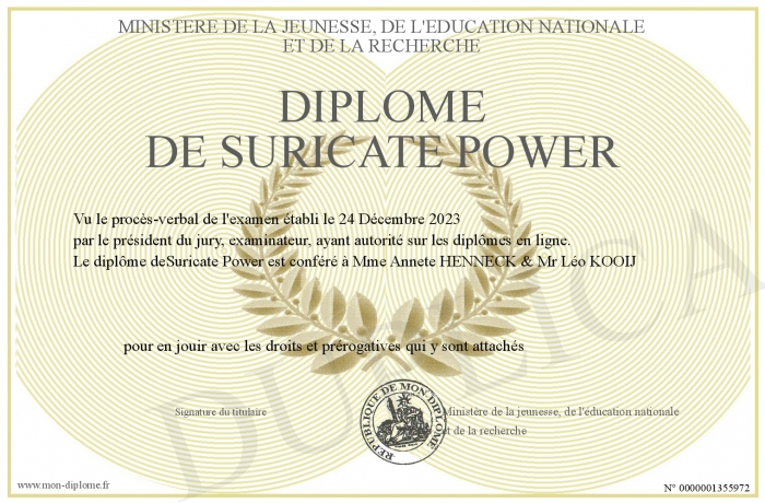 Envoyez par email votre Diplôme de Suricate Power personalisé