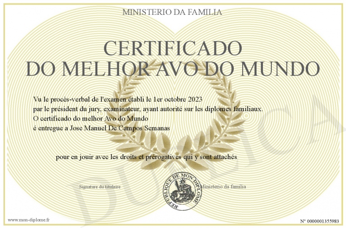 Envoyez par email votre certificado do melhor Avo do Mundo personalisé