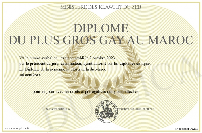 Envoyez par email votre Diplôme du plus gros gay au Maroc personalisé
