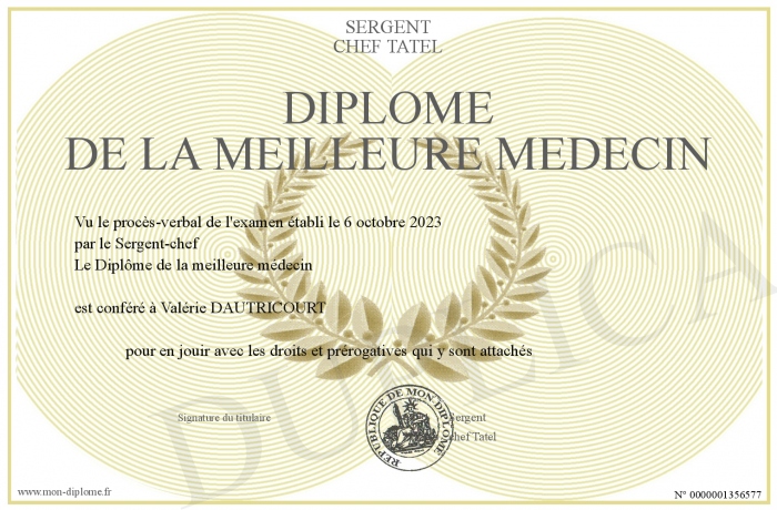 Envoyez par email votre Diplôme de la meilleure médecin personalisé