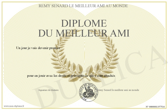 Envoyez par email votre Diplôme du meilleur ami personalisé