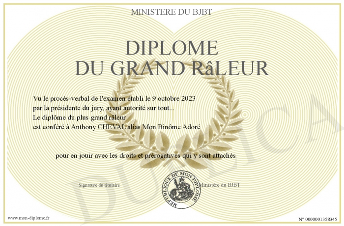 Envoyez par email votre Diplôme du grand râleur personalisé