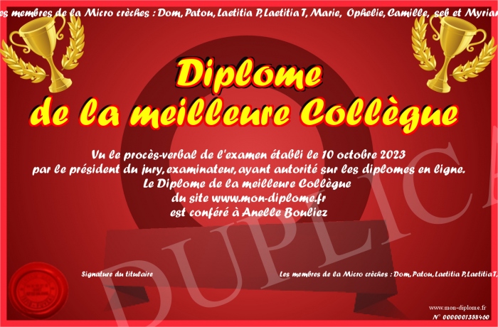 Envoyez par email votre Diplôme de la meilleure Collègue personalisé