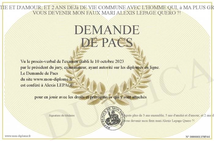envoyé par le Après plus de 3 ans ensemble; 5 ans d'amitié et d'amour; et 2 ans déjà de vie commune avec l'homme qui, à ma plus grande envie, sera celui de ma vie. Désirez-vous devenir mon faux mari Alexis Lepage Quero ?! !