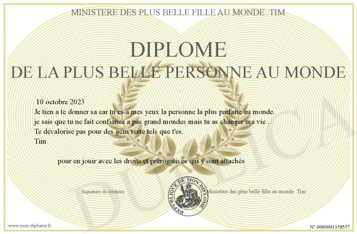 Envoyez par email votre Diplôme de la plus belle personne au monde personalisé