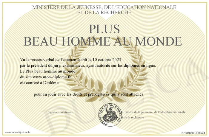 Envoyez par email votre Plus beau homme au monde personalisé