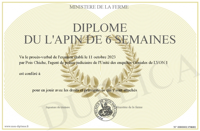 Envoyez par email votre Diplôme du l'apin de 6 semaines personalisé