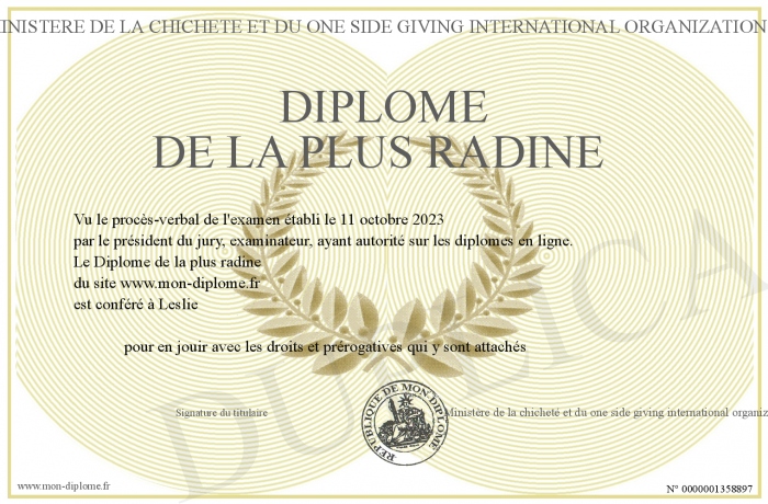 Envoyez par email votre Diplôme de la plus radine personalisé