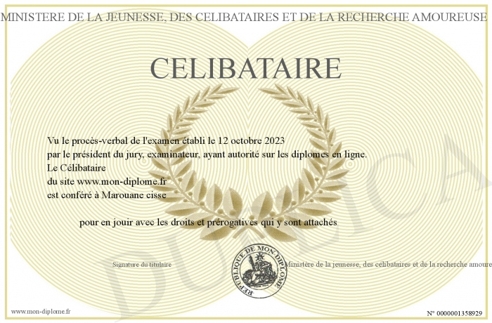 envoyé par le Ministère de la jeunesse, des célibataires et de la recherche amoureuse !