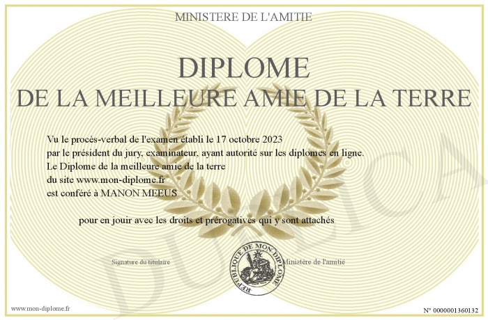 Envoyez par email votre Diplôme de la meilleure amie de la terre personalisé