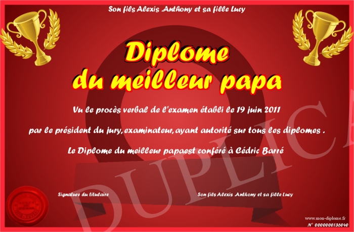 Envoyez par email votre Diplôme du meilleur papa personalisé