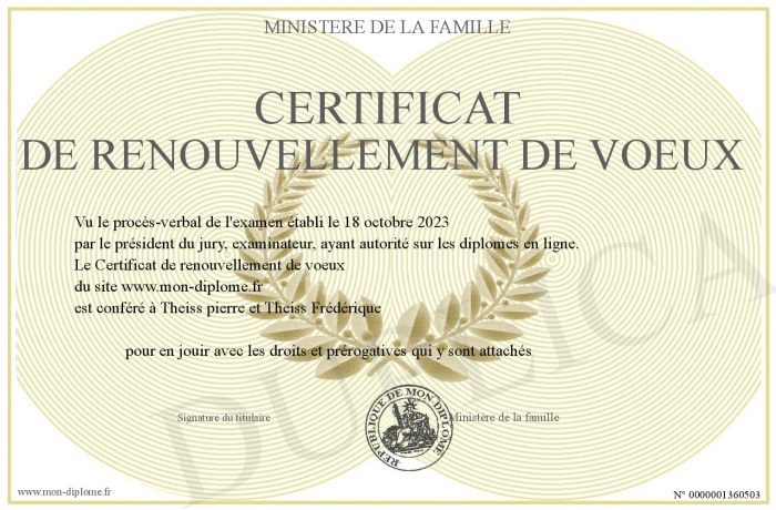 Envoyez par email votre Certificat de renouvellement de voeux personalisé