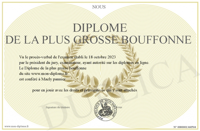 Envoyez par email votre Diplôme de la plus grosse bouffonne personalisé