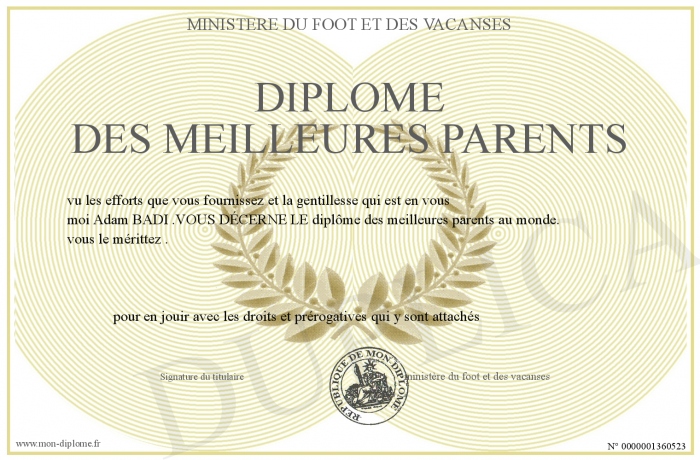 Envoyez par email votre diplôme des meilleures parents personalisé