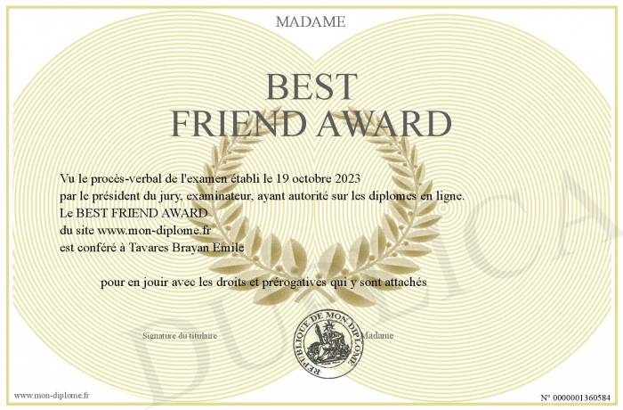 Envoyez par email votre BEST FRIEND AWARD personalisé