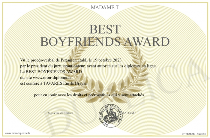 Envoyez par email votre BEST BOYFRIENDS AWARD personalisé